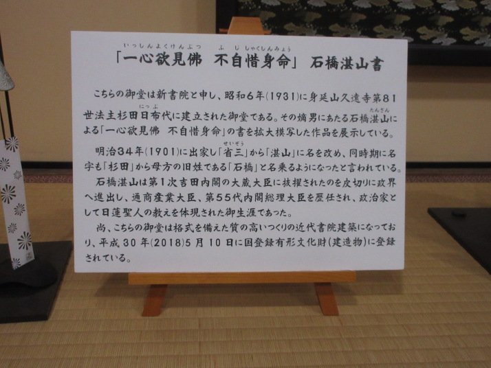 ![]() 「一心欲見佛 不自借信命」 石橋湛山書 |