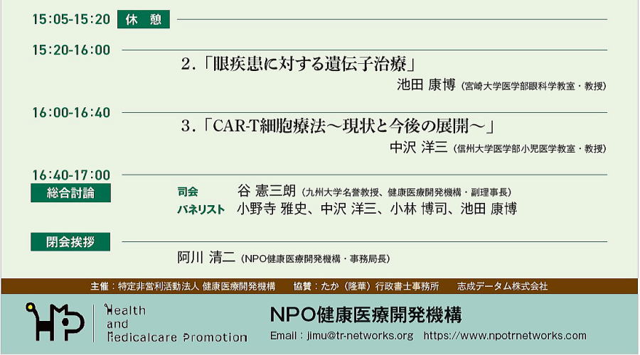 清水昭 会長が 理事長を務める、健康医療開発機構の開催するシンポジウムの案内です。