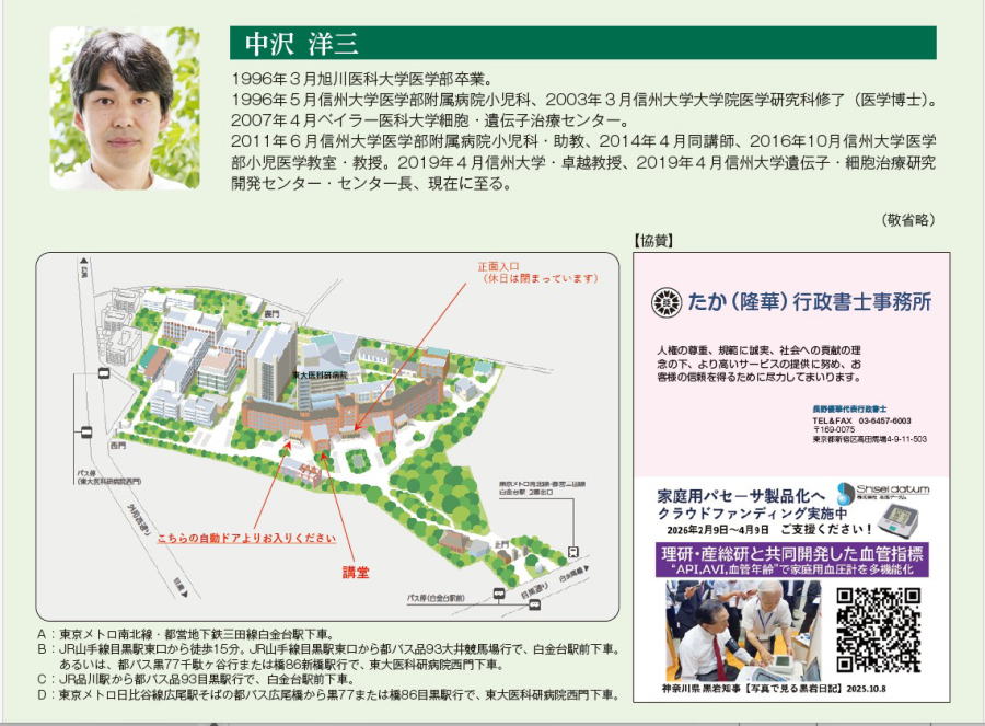場所:東京大学医科学研究所 講堂(キャンパスマップ1の所)とZoomによるハイブリット開催