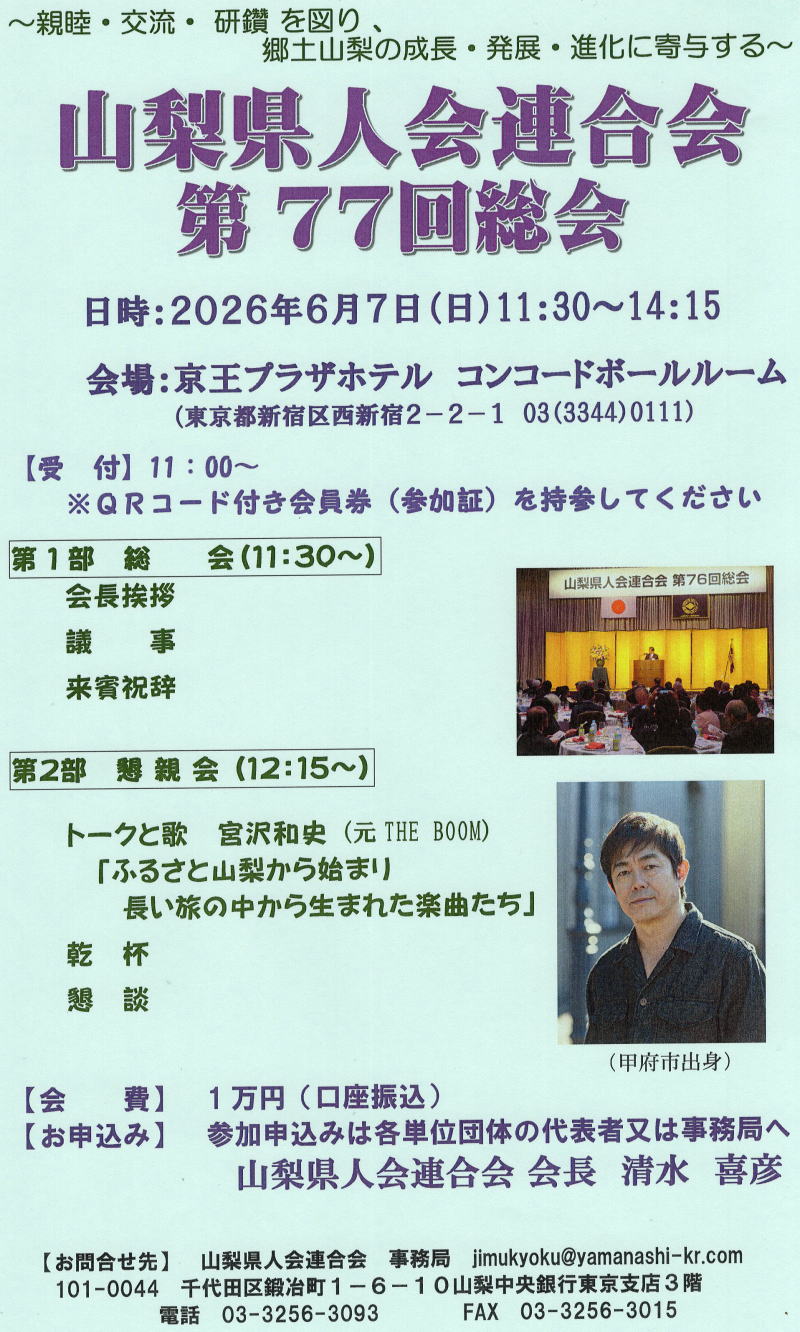 【連絡先】山梨県人会連合会事務局 jimukyoku@yamanashi-kr. com